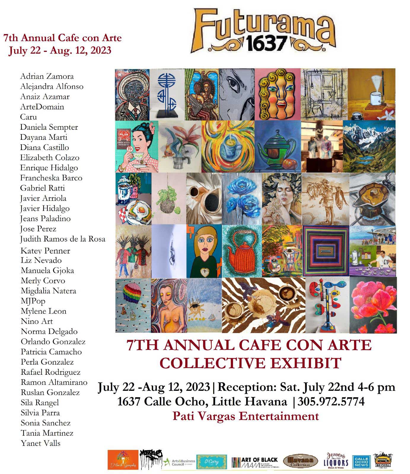 - Se presentarán obras de artistas plásticos en la 7TH ANNUAL CAFÉ CON ARTE JULY 22-AUG. 12, 2023. 1637 Calle Ocho, Little Havana.
